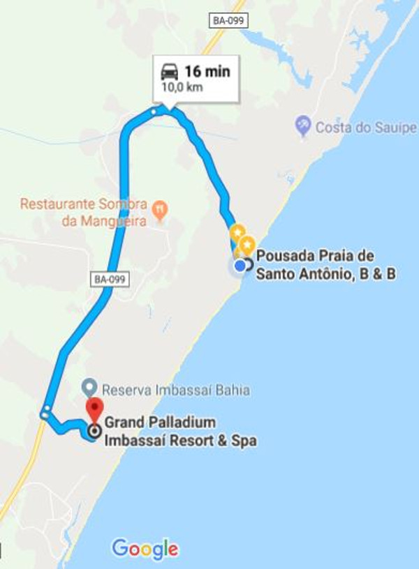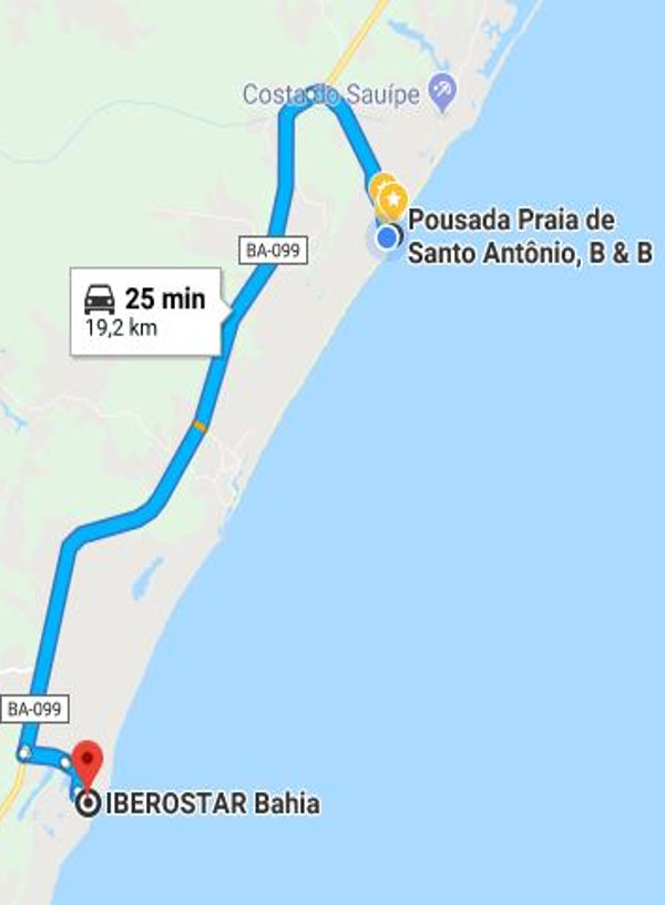 Sabemos da dificuldade de encontrar Uber nos horários em que a produção precisa estar antes e depois do evento, por isso fazemos o traslado até o evento, ida e volta. Consulte nossos preços! Ficamos a 1 km dos Resorts Costa de Sauípe pela praia e a 7 km pela BA-099! É uma excelente oportunidade para conciliar negócios e lazer e aproveitar para conhecer as atrações turísticas mais próximas. A Praia de Santo Antônio é uma das mais bonitas da região. Fique aqui com a gente. A diferença de preço compensa!