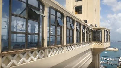 O Elevador Lacerda tem 72 metros de altura, 2 torres, vários corredores e a viagem dura 22 segundos.           Foto:   WikiLoves, Ciro Amado